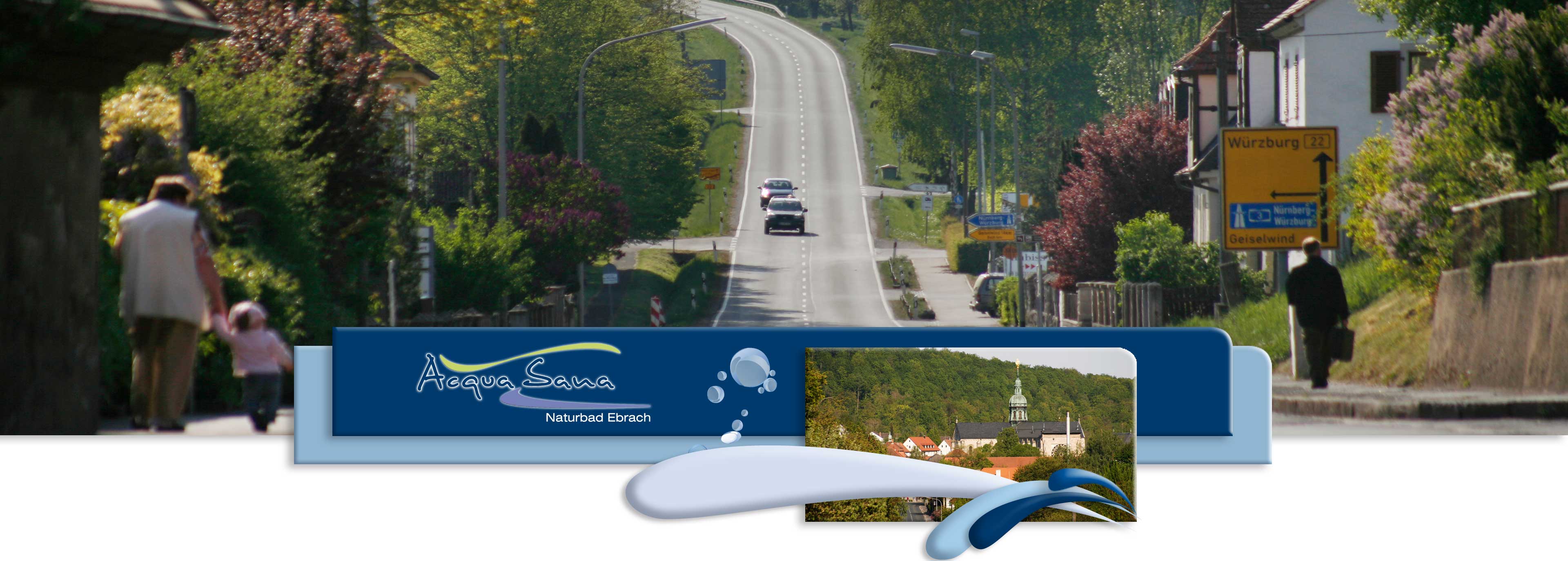 Sie finden unser Naturbad von Westen (Würzburg) kommend, gleich am Ortseingang von Ebrach rechts.